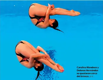 México perdió una importante oportunidad de medalla, luego de que las representantes en la modalidad de trampolín de tres metros sincronizado, carolina mendoza y dolores hernández no tuvieran una buena participación carolina mendoza. México se quedó cerca de conseguir una medalla en trampolín de tres metros sincronizados.
